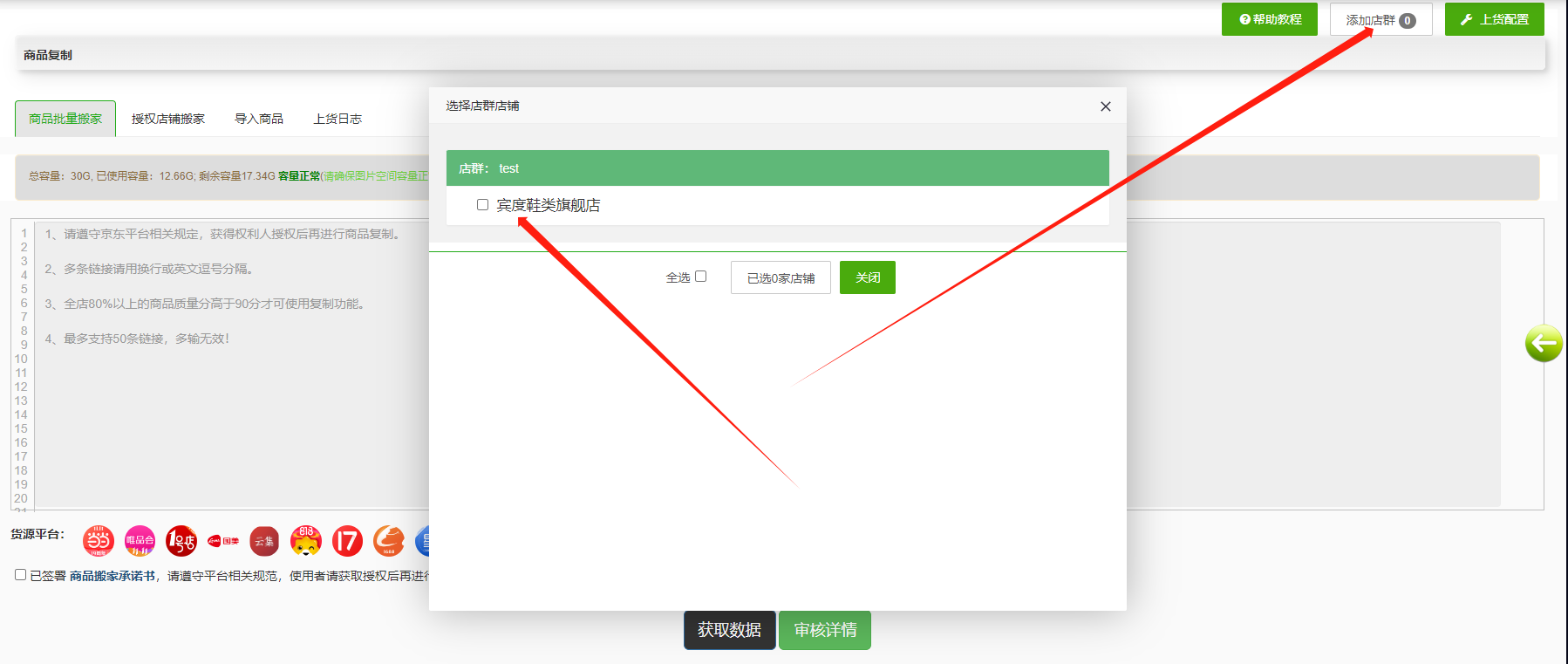 三,搬家上货 可选择 店群的不同店铺同时上货
