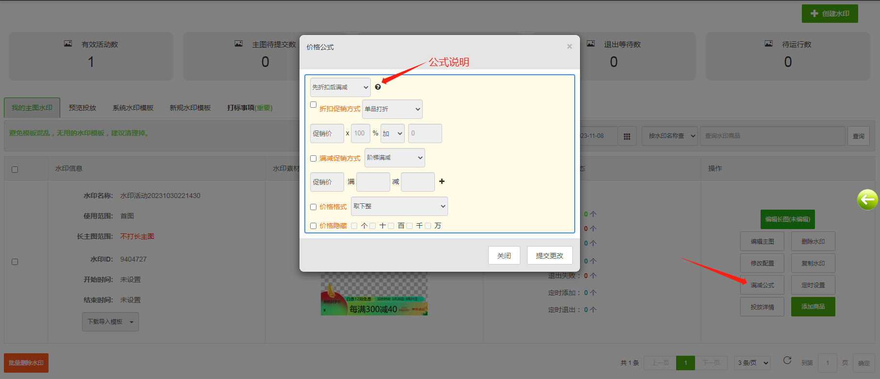 编辑模版,可以重新编辑已经创建好的模版,当该模版已经有投放商品合成水印图,编辑模版里的内容,是无法更改已经合成水印的商品,必须要重新投放预览审核后才会效。