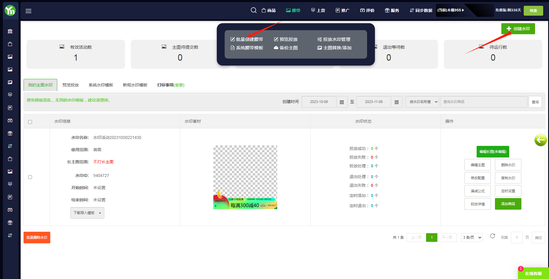• 同一水印活动下如果商品已预览投放了,不可再次预览投放(重新合成)