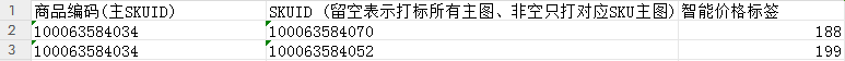 需要合成打标的商品子SKU有多个商品,主SPU编码就需要填写对应的多少行,智能价格填写的就是对应每个SKU合成水印显示的价格