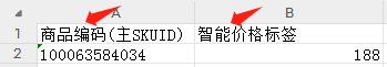 下载按商品导入模版,填写商品编码和智能价格,商品编码对应主SKU,如图箭头处,智能价格对应水印创建的999位置,填写的价格导入后就是你填写的价格。