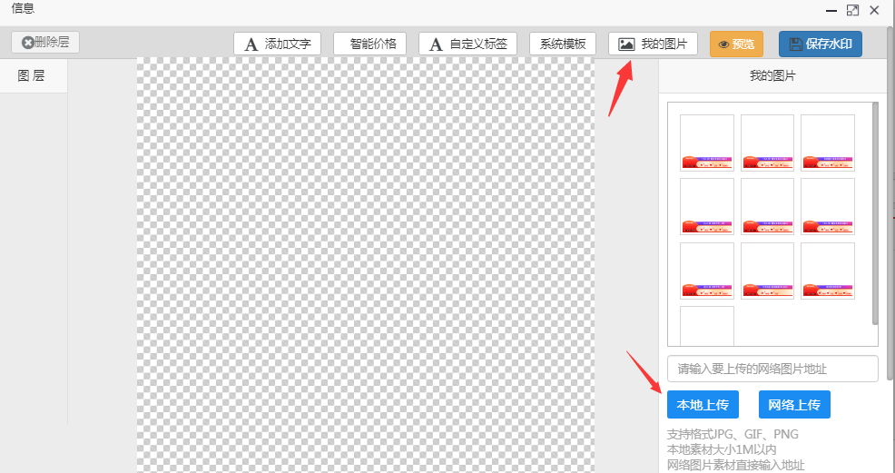 我的图片里可以上传使用本地图片,需要上传PNG格式的透明图上传JPG格式的会有白底图,关联商品的时候会遮挡。