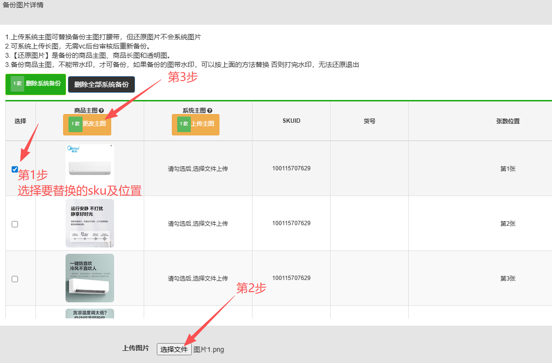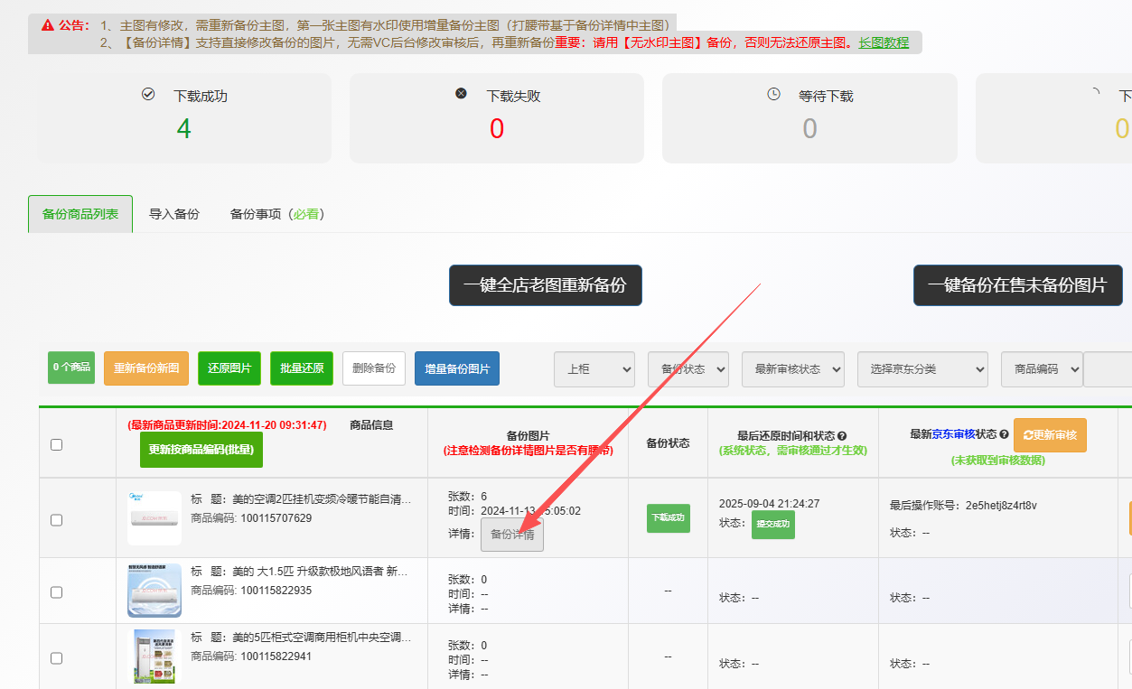 备份的主图,需要是无水印无腰带的图片,可以点击查看备份详情,检查备份的主图是否是最新的主图,不是最新主图不能打腰带,否则最新主图会被覆盖掉且不可恢复。