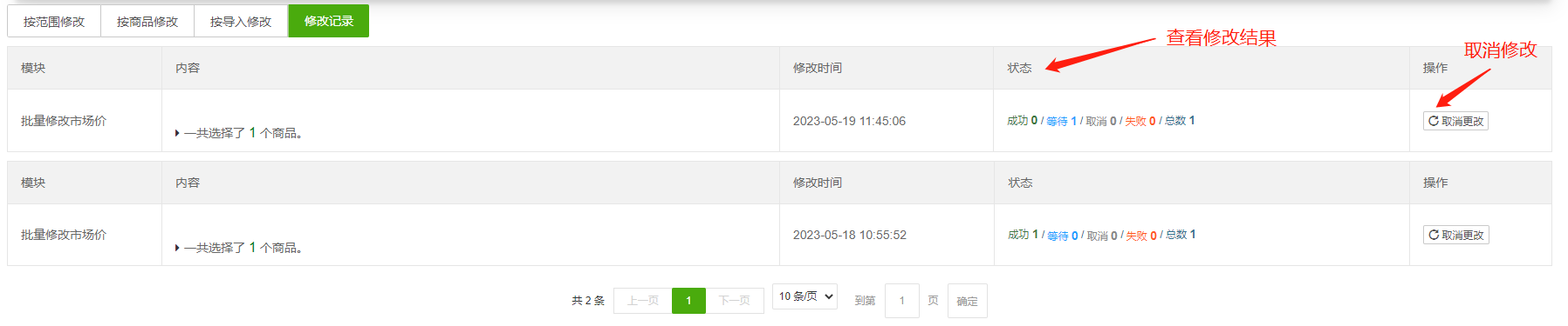 亿美店长-批量修改-批量修改记...