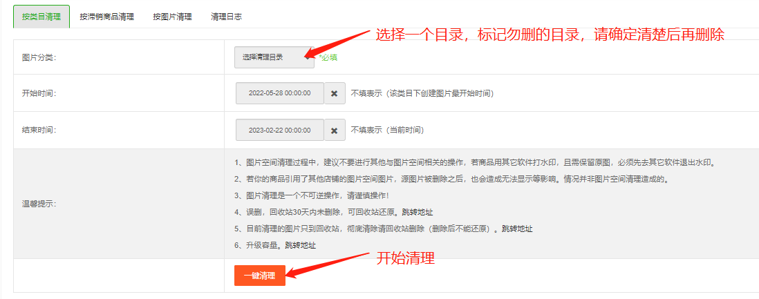 1、按类目清理