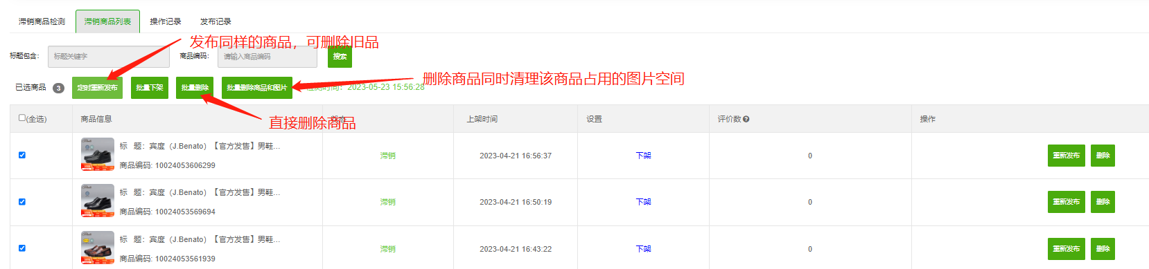 2、查看滞销商品列表,处理滞销商品