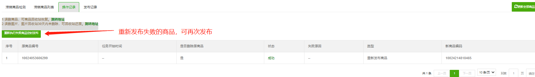 3、查看处理滞销商品的操作记录