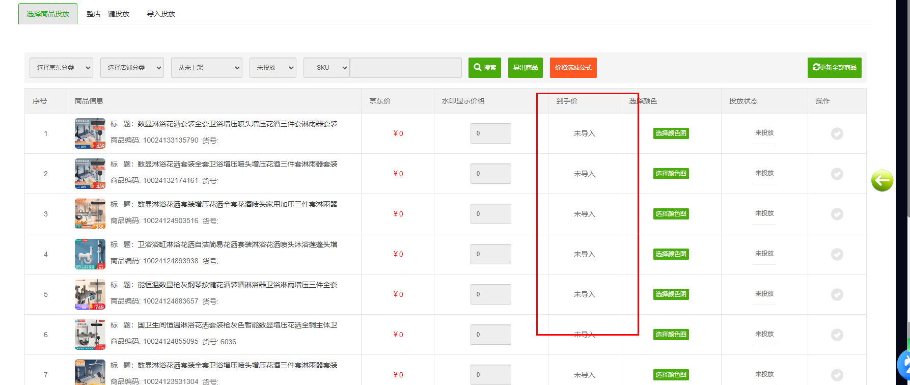 第四, 水印投放,添加商品时,选择导入商品 ,核对价格是常正确,正确再投放