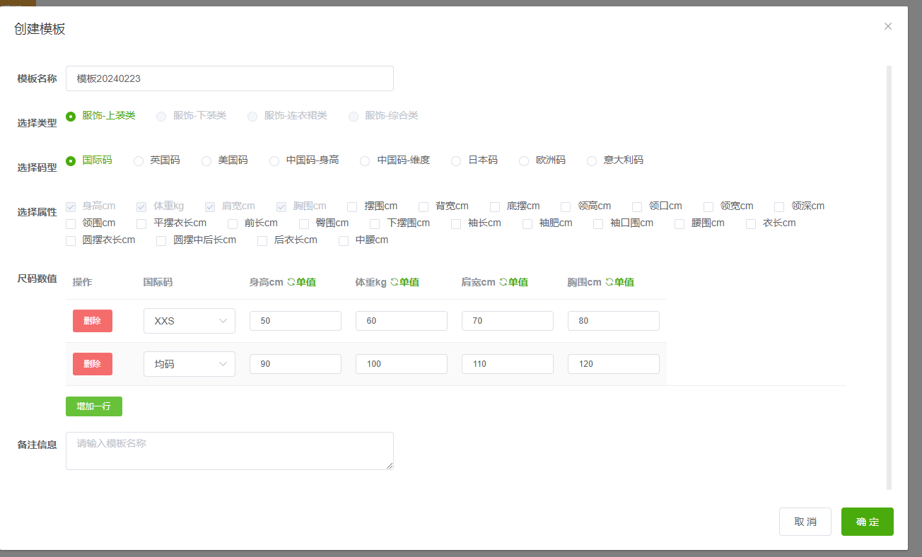 选择类型后新增