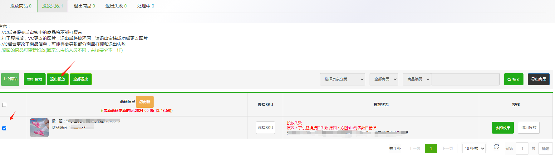 2、京东替换接口失败 原因:该商品存在审核过程中的申请