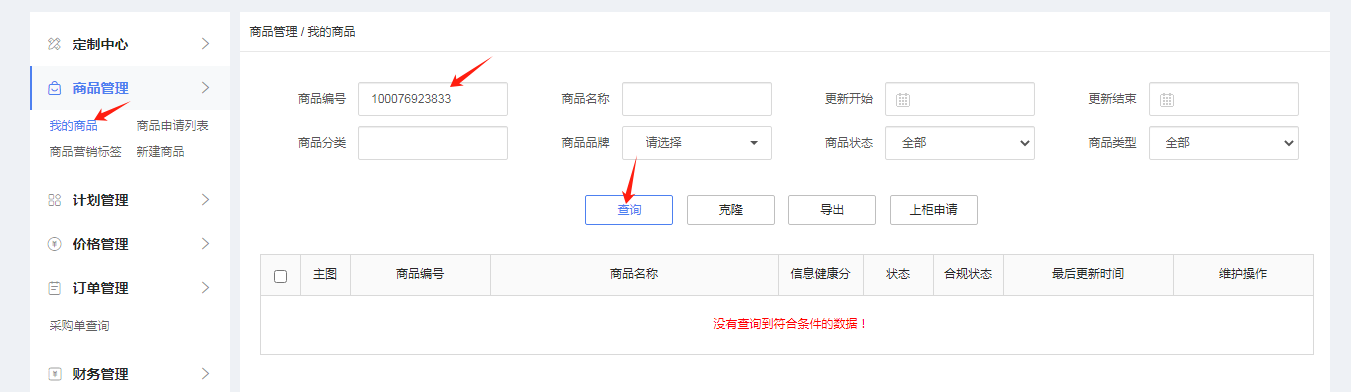4) 我的商品搜索该商品,搜索不到则说明不正常,要先解决让后台能够搜到该商品,回到亿美重新投放才会成功