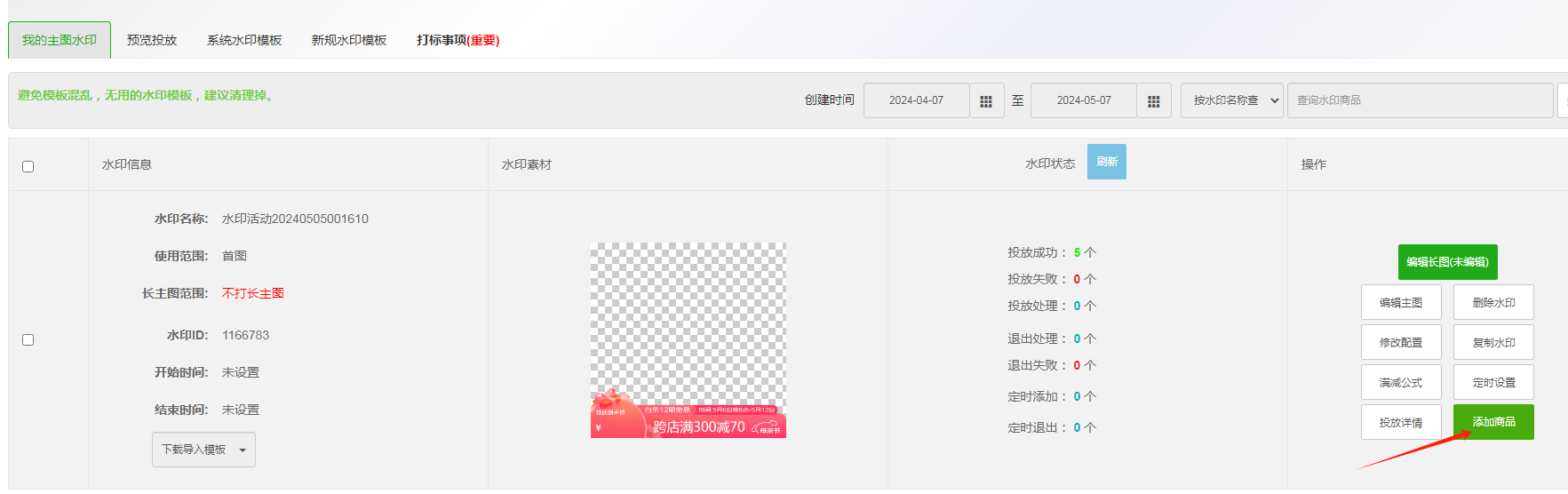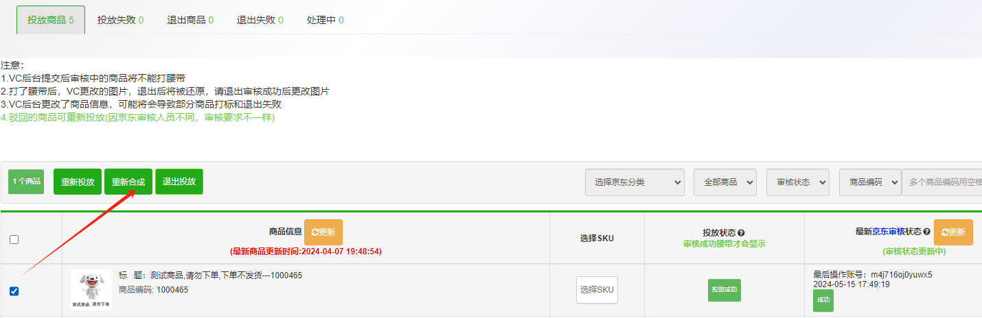 3) 添加商品,重新合成,投放