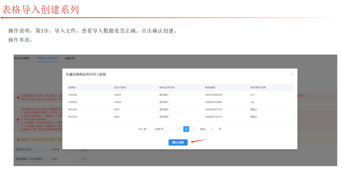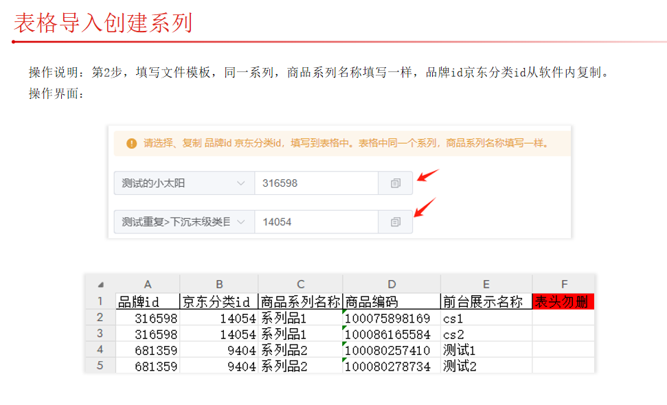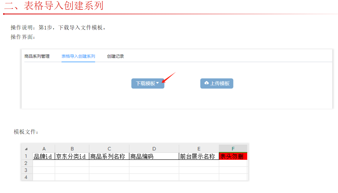 2、表格导入创建,表格填写类目、品牌、关联商品,批量导入创建