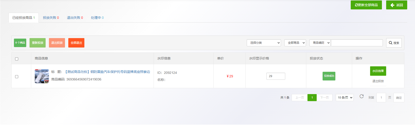 三,选择商品后 开始投放在后台运行。