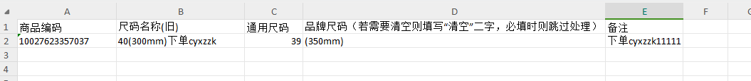 4、表格导入修改,Excel表格导入需修改尺码的商品和尺码