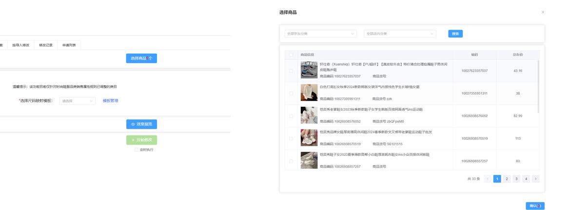 2、选择商品修改,手动选择商品设置尺码映射模板批量修改尺码