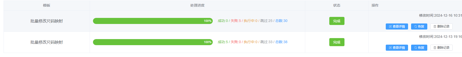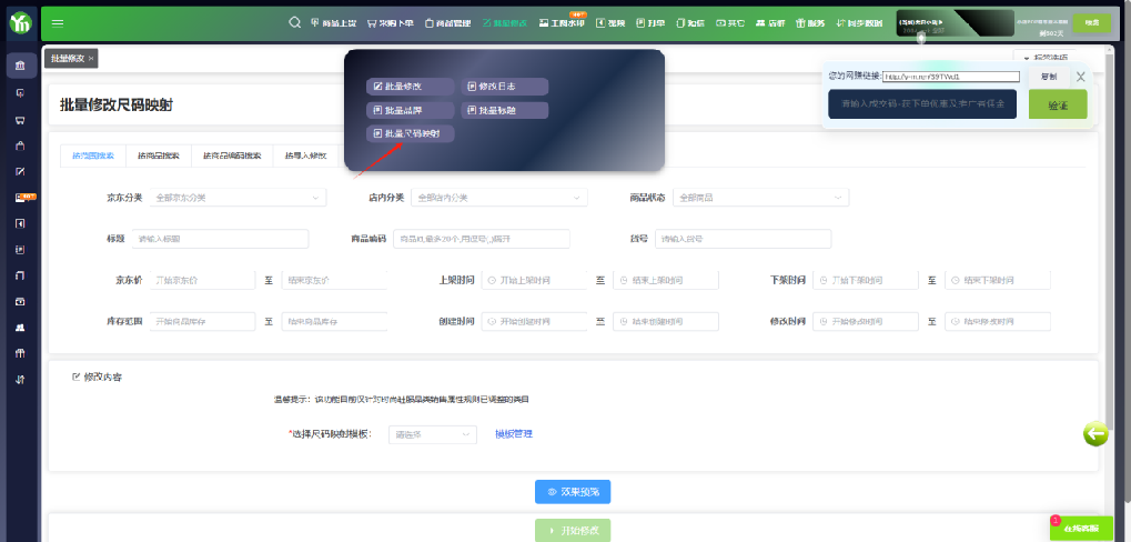 功能介绍:因平台销售属性尺码规则变动,帮助商家批量修改尺码以符合尺码规则;4种批量修改方式: