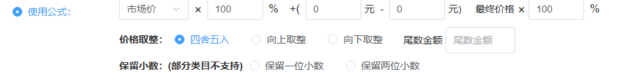 价格的处理也有:四舍五入,向上取整,向下取整,尾数设置为数字0~9的设置,如果有小数点,则可以保留小数1位或者2位小数(部分类目不支持)