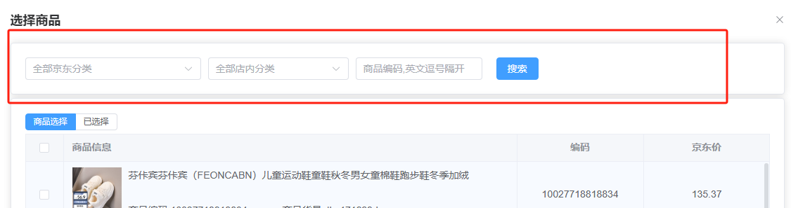 商品筛选区域: