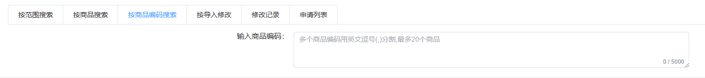 就是可以通过输入单个或者多个商品编码(spu),系统只会搜索并修改您输入的这些商品编码(spu)的商品