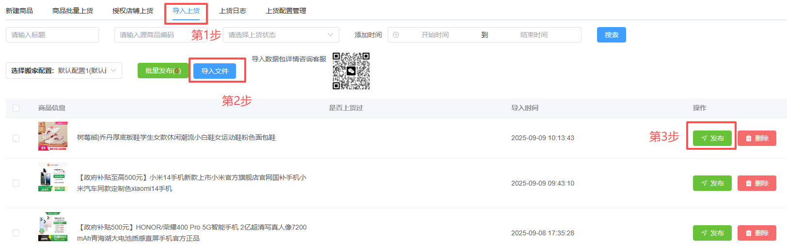 导入上货步骤(导入商品数据包,数据包来源于其他电商平台导出):
