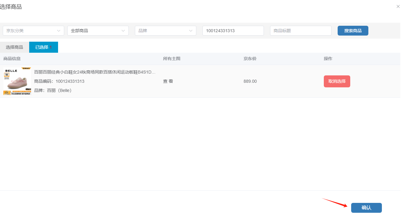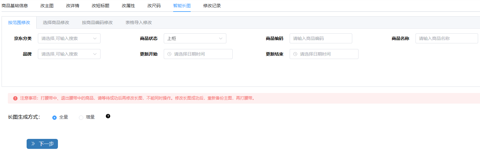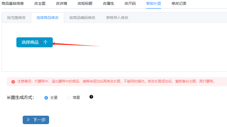 第1步,设置类目、品牌等商品搜索条件,点击下一步