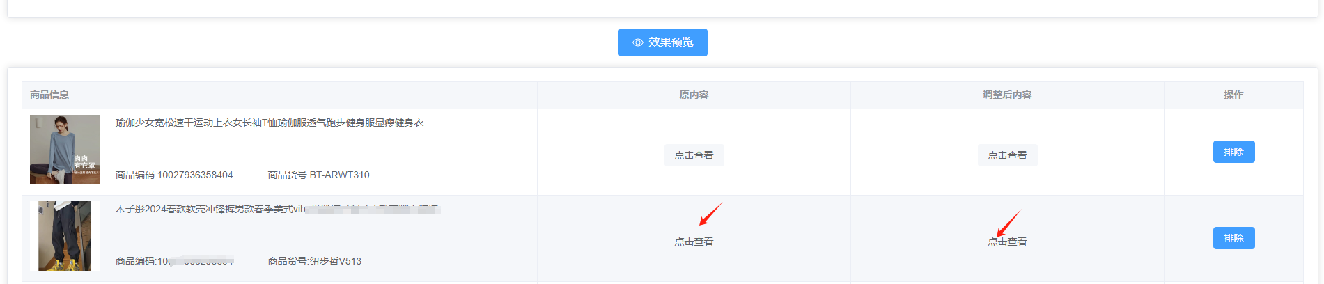 最后最后:商品选择了,修改方式也选择了,点击效果预览之后点击点击查看,查看生成后的长图,确定没有问题后,可以点击开始修改,或勾选定时执行,定时投放。
