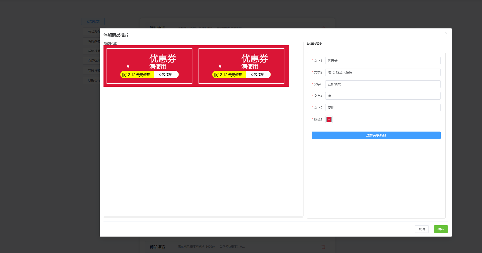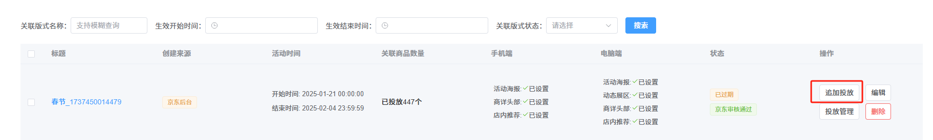 在创建完成关联模板之后,为需要此关联模板的商品进行绑定,选择追加投放