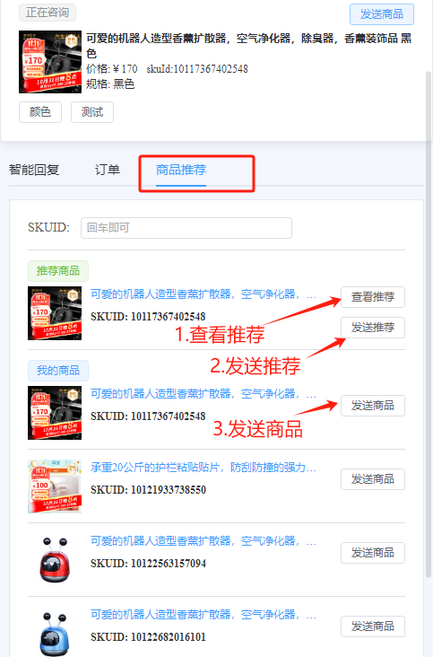 1.查看推荐:点击查看推荐后,可查看推荐话术和商品