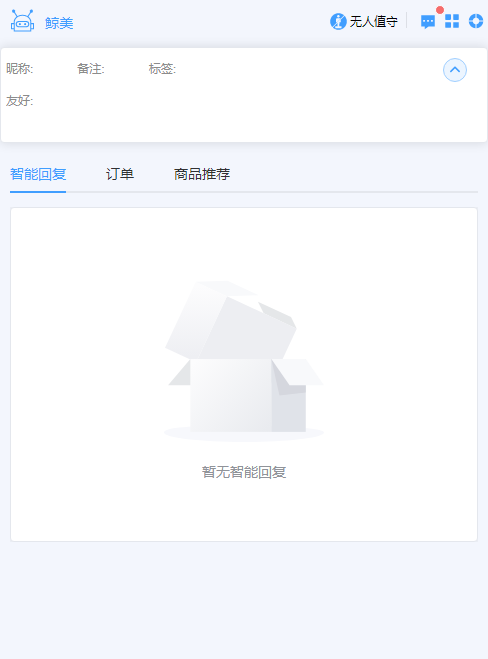 3.点入鲸美机器人后,会出现空白界面,须点击用户后会出现用户对应信息内容