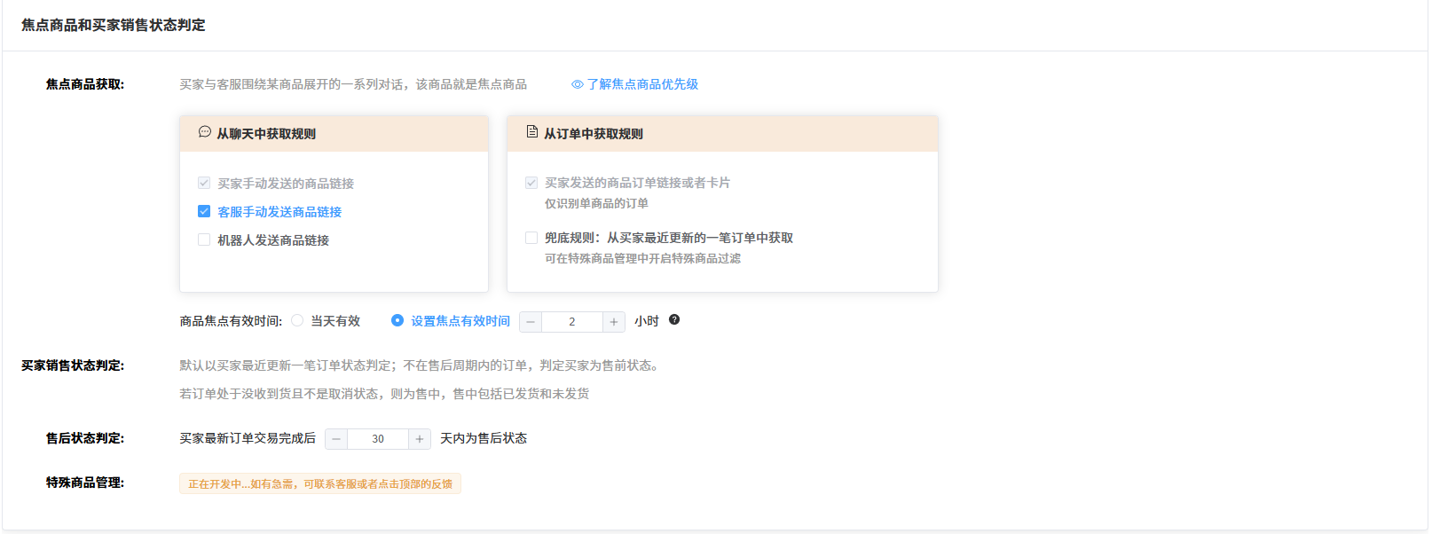 1.焦点商品:可通过买家,客服,机器人聊天发送的商品判定,也可通过发来的订单或则最新订单中获取商品