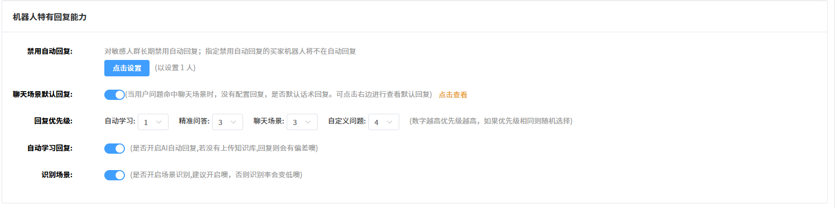 4.可对机器人的回复能力进行配置