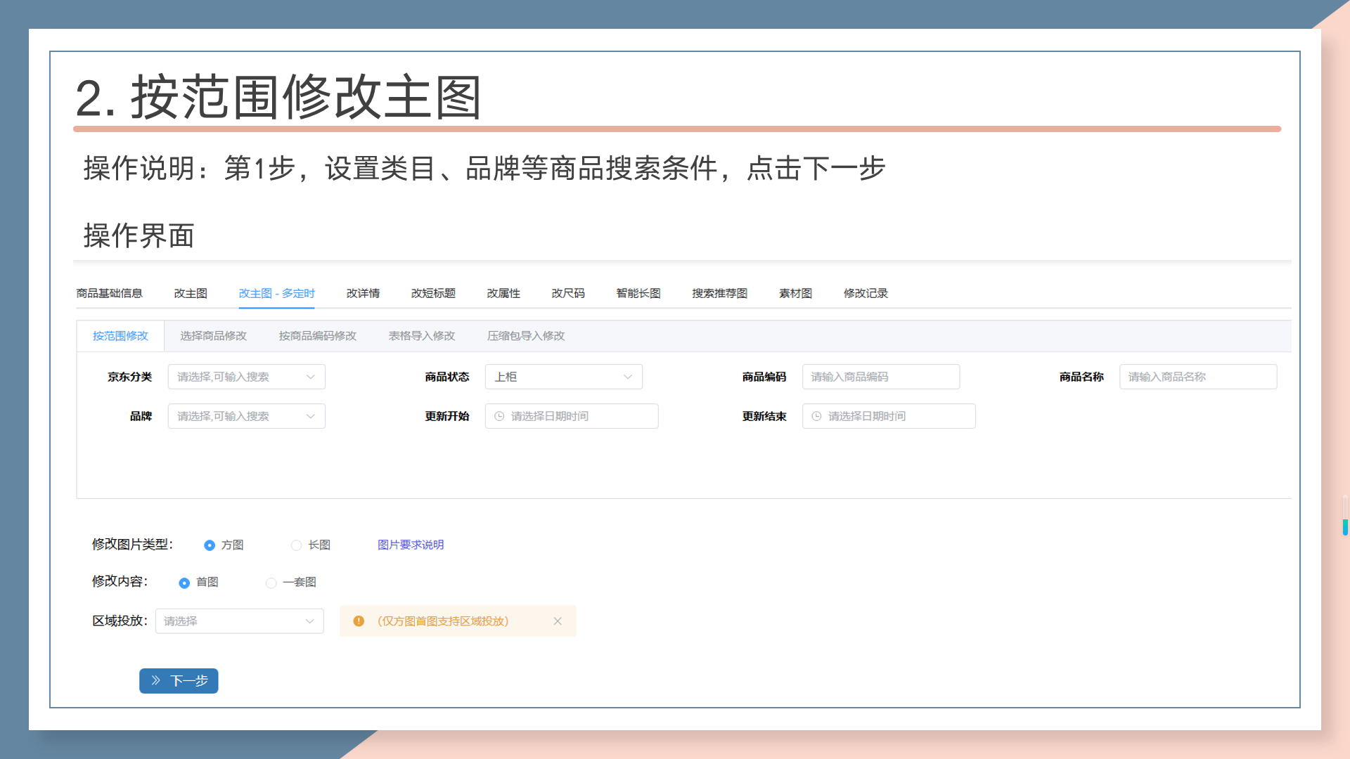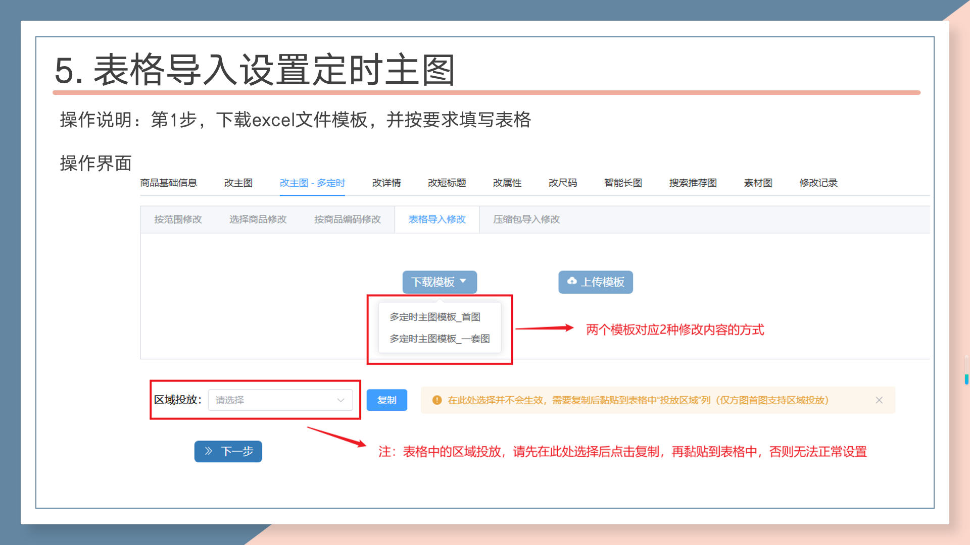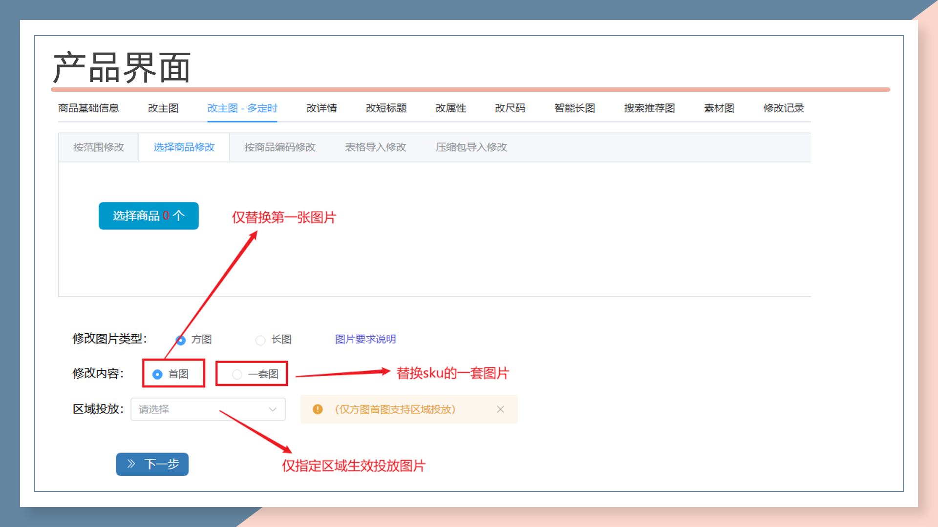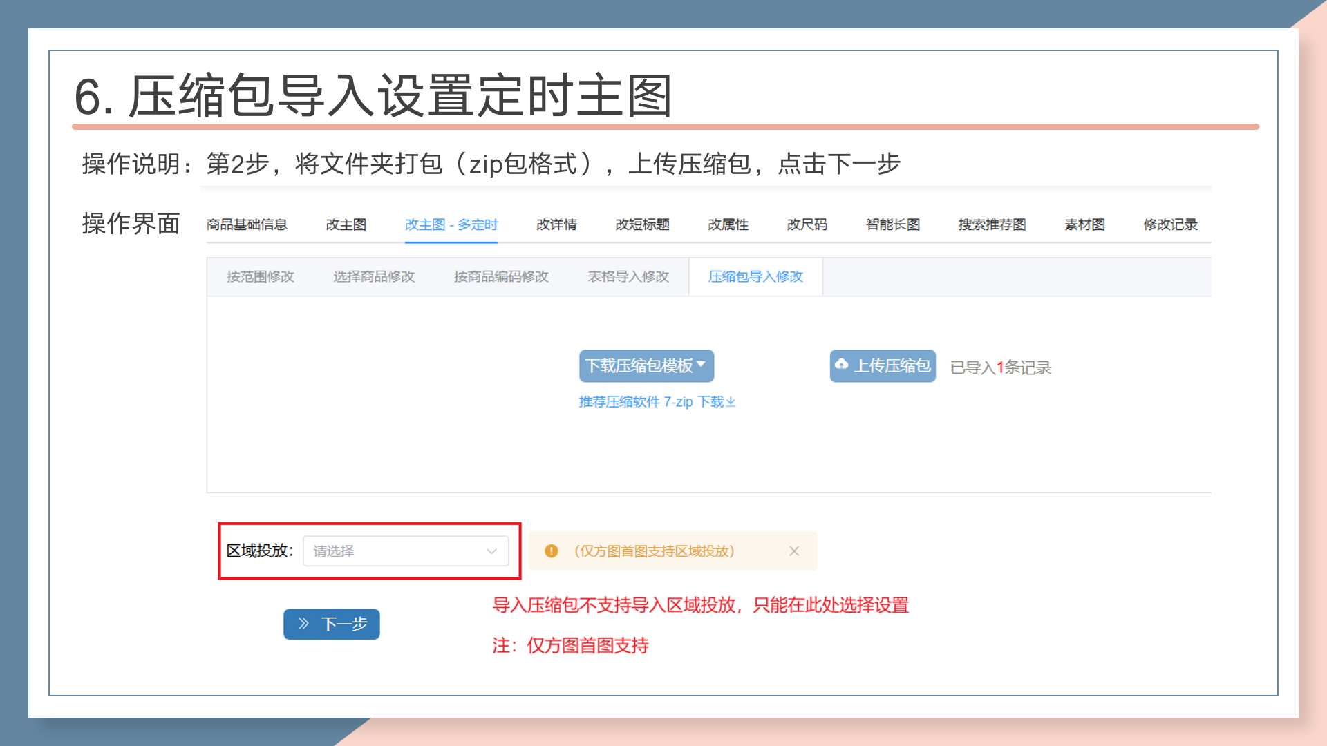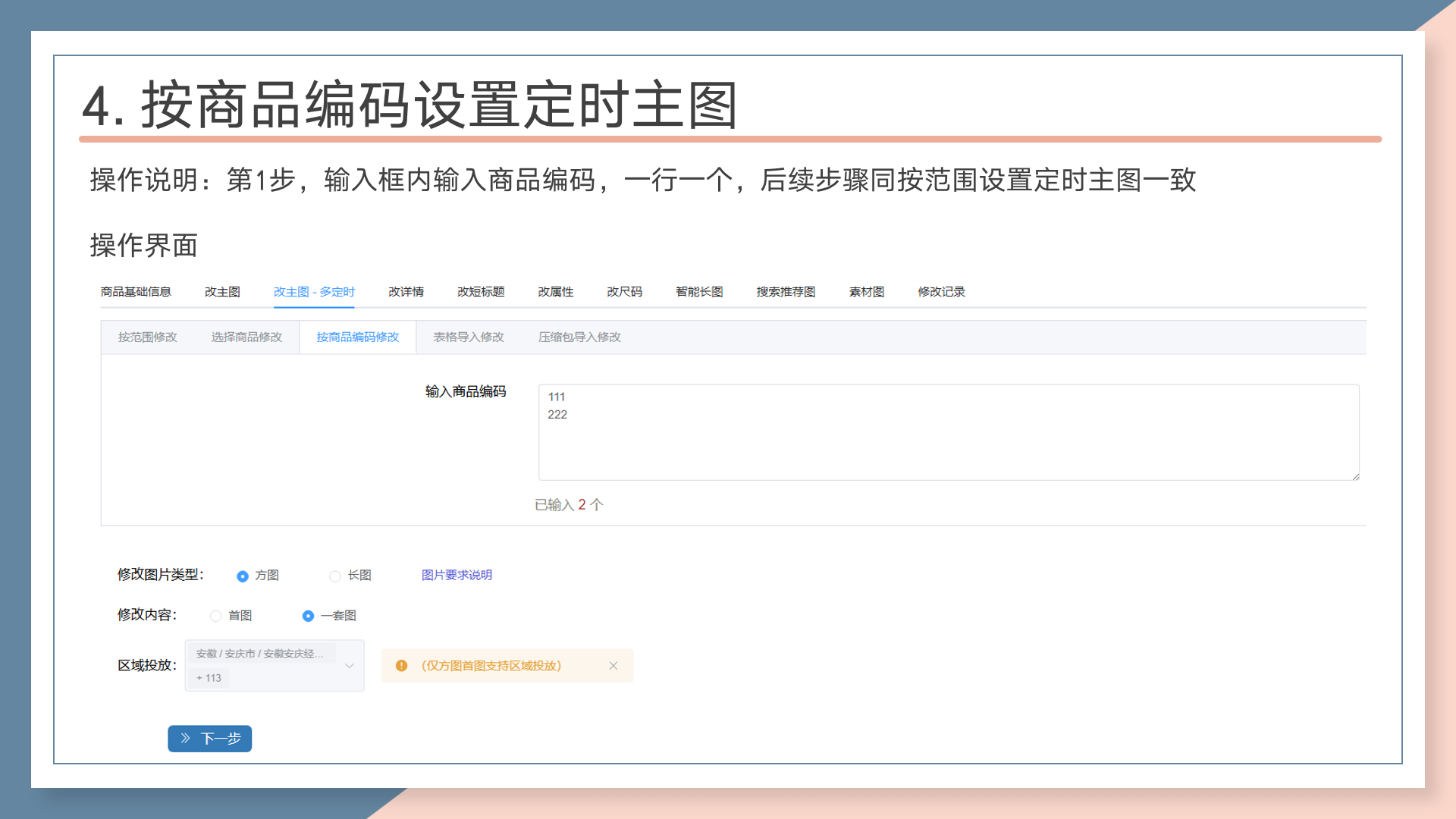 自营批量设置多定时主图一套图——首图/长图——区域投放