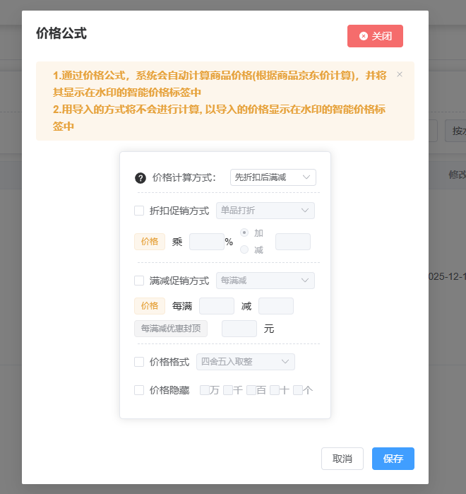 7.点击价格公式, 导入投放的按导入的价格来, 其余的价格按京东价进行价格公式计算