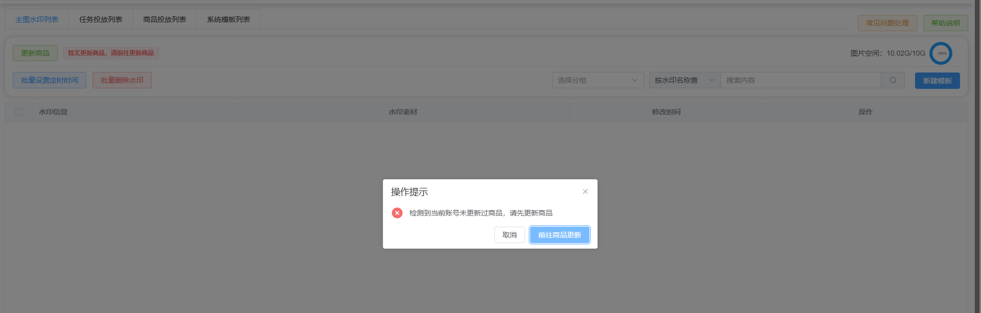 3.当点击更新商品后 无法进行投放 得等待商品更新完毕后再投放商品