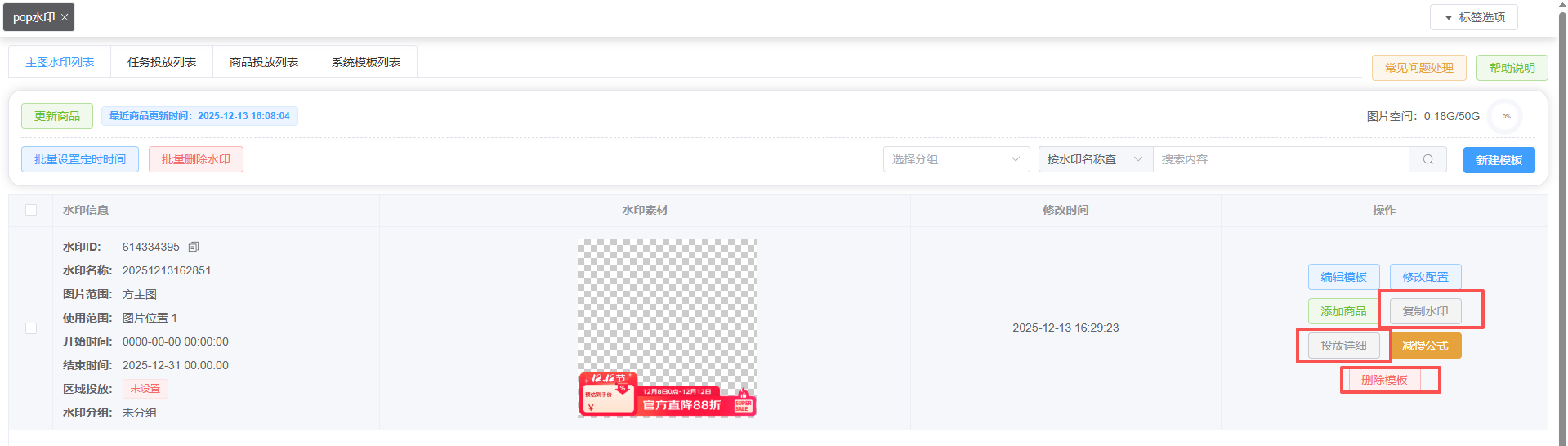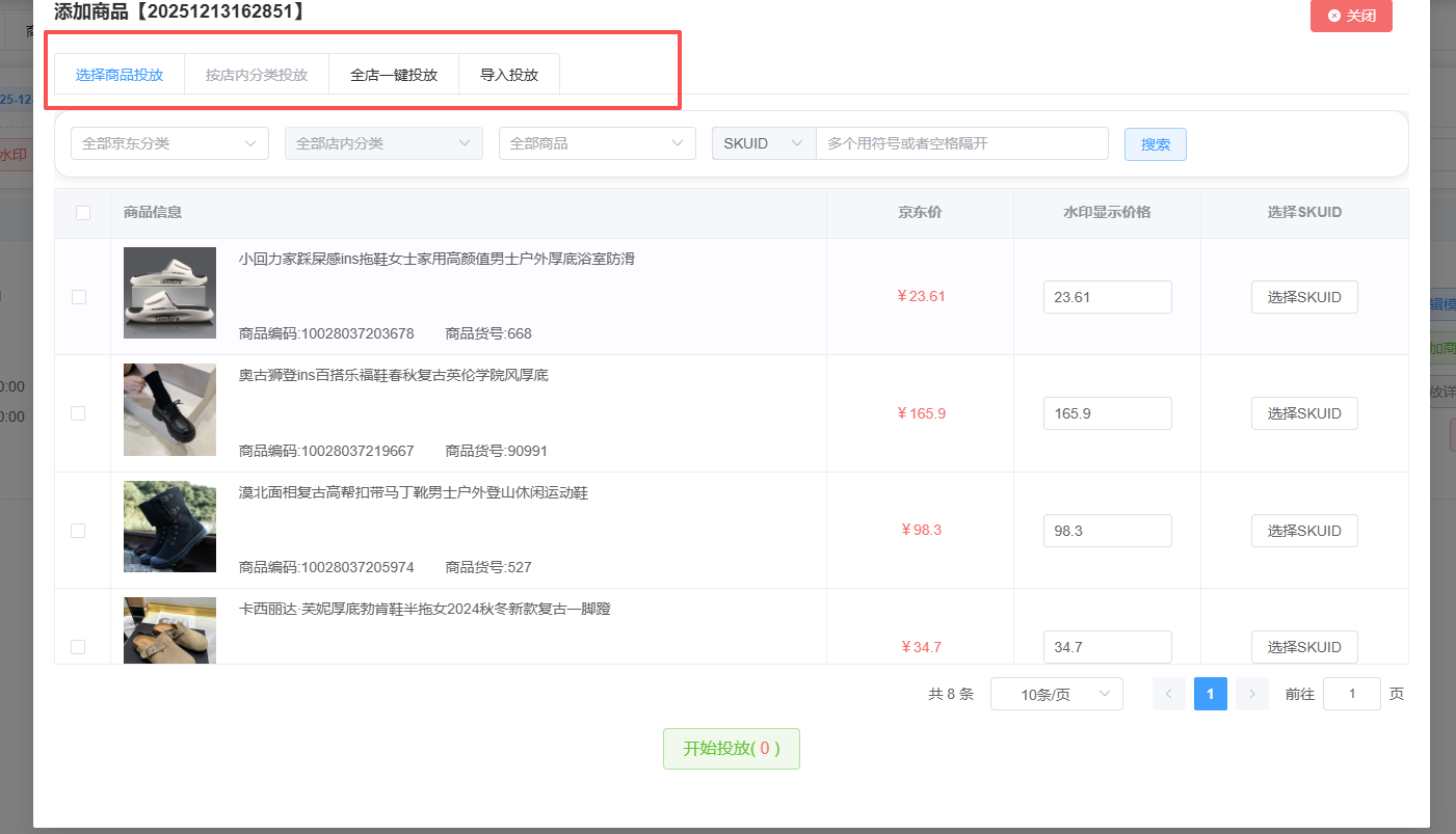 选择商品投放: 可对商品和具体skuId进行投放水印