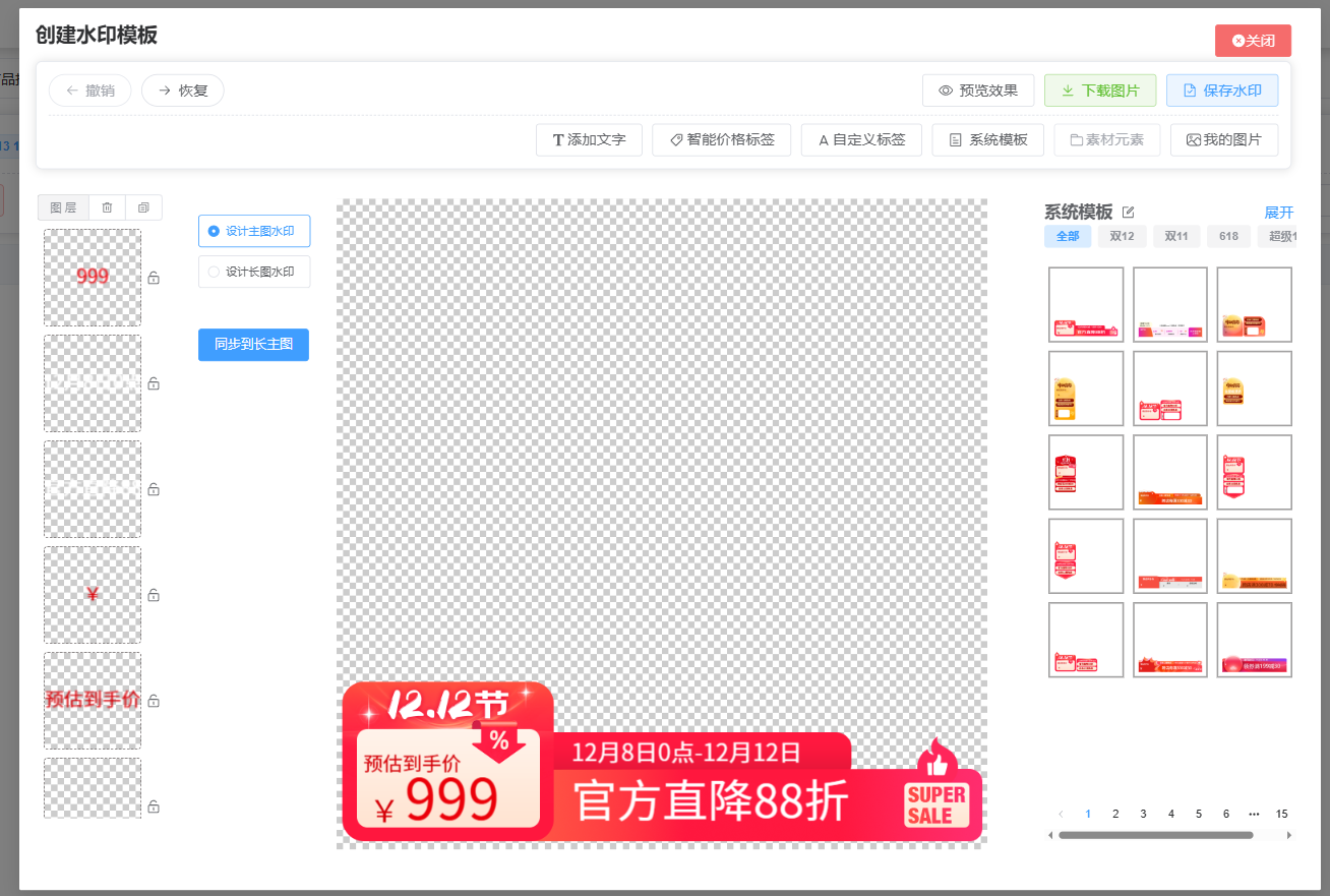 系统模板: 添加系统已有的水印模板进行使用或者修改