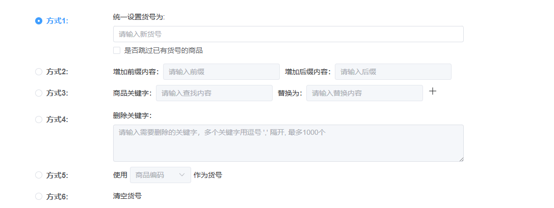 3.导入方式只需要填些SKUID,无需填些商品编码